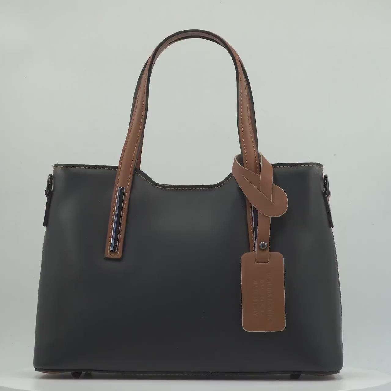 This dark gray tote represents the timeless balance between modern elegance and classic Italian style. The smooth structure, clean silhouette, and contrasting brown handles are inspired by the subtle, earthy tones of Tuscan architecture historic stone walls, terracotta roofs, and sun-washed courtyards.
